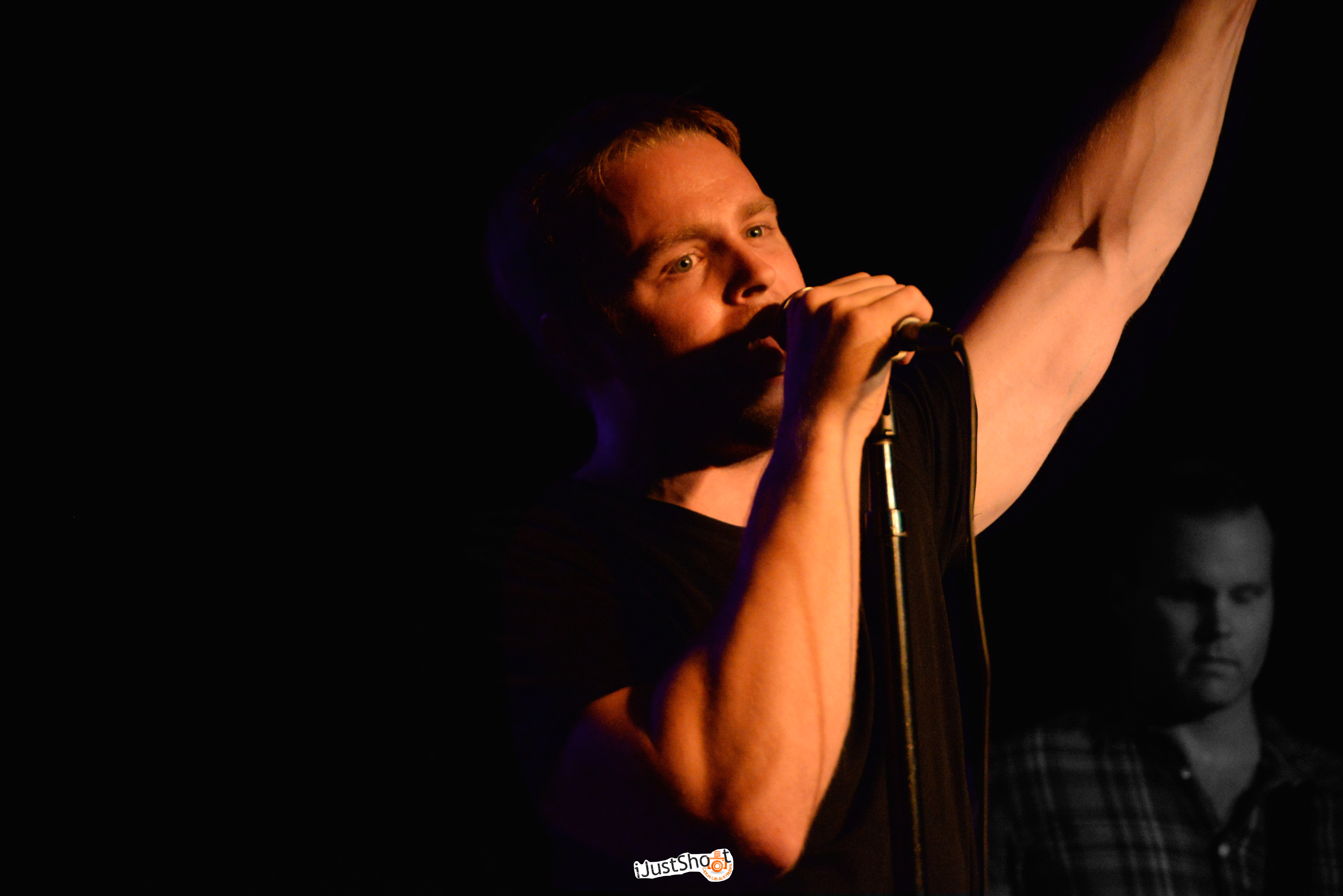In route to my official visit to Syracuse University as a football recruit, I met a friend named Jake. I was sitting nervously waiting to board the plane from New York LGA Airport to Syracuse Hancock Airport when I ran into Jake. He somehow knew I was also a football recruit going on an official visit to Syracuse with hopes of becoming another member of the Orangeman family. We played four years together and had memorable moments at Chucks and on South. Now we are about 6 years post Orangeman life and I had an amazing opportunity to go to Arlene’s Grocery to shoot his budding band – Audio Revival. As the band performed its smash-to-be “Southern Song” and rocked the crowd, I was able to capture this amazing shot of Jake heading the group as the lead singer. With the dimly lit background and stage light shining perfectly on the artists, I was able to capture this awesome portrait of a fellow Orange turned rock star – “Jakie Boy” aka “Mad dog” aka “Audio Revival lead singer”. -iJustShoot.com